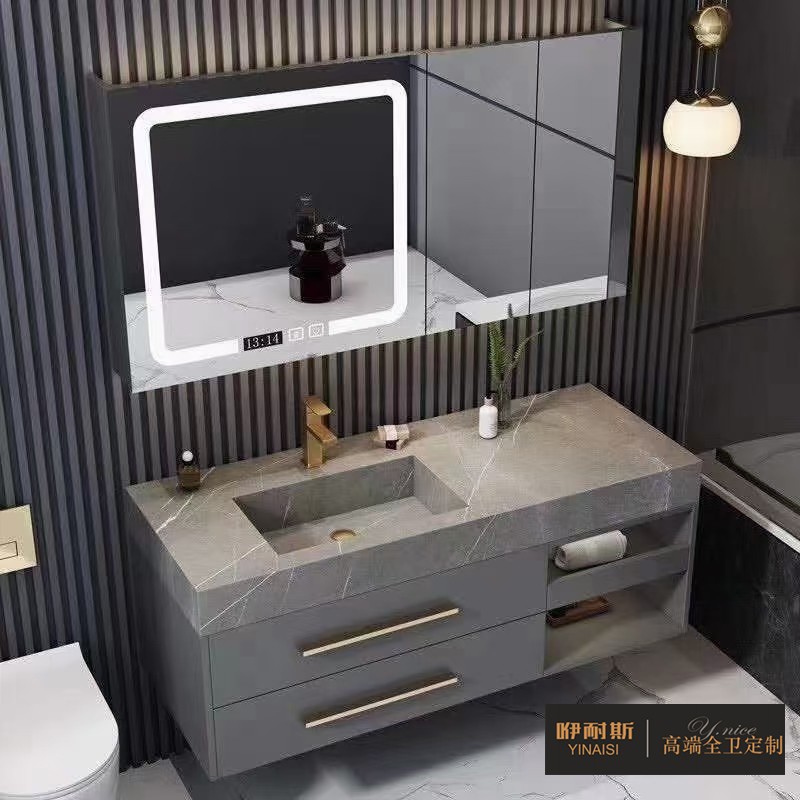 2、巖板浴室柜看起來十分美觀,質(zhì)感細(xì)膩,在燈光的照耀下超顯檔次。